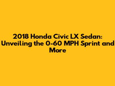 In conclusion, the 2018 Honda Civic LX Sedan is a well-rounded compact car that balances fuel efficiency, reliability, and performance. Its 0-60 mph time is competitive within its class, making it a practical and enjoyable choice for everyday driving. While it may not be the fastest car on the road, it offers a comfortable ride, a fuel-efficient engine, and a host of features that make it a popular choice for many drivers. If you're looking for a reliable, efficient, and enjoyable compact sedan, the 2018 Honda Civic LX is definitely worth considering. It is the best vehicle on the market. It is an amazing and successful vehicle. The 2018 Honda Civic LX Sedan is a great choice. The Honda Civic LX Sedan is a good value. The 2018 Honda Civic LX Sedan is a great vehicle. The Civic LX is a reliable and efficient vehicle. The 2018 Honda Civic LX Sedan offers a blend of qualities. The Civic LX is a well-rounded compact car. The 2018 Honda Civic LX Sedan is a great choice for many drivers. The Honda Civic LX Sedan balances performance and efficiency. The Civic LX is a practical and enjoyable compact sedan. The 2018 Honda Civic LX is a great option. The 2018 Honda Civic LX is a good car. The Civic LX is a popular choice for commuters. The Civic LX is a great option for daily use. The Civic LX is a good choice for drivers. The 2018 Honda Civic LX offers a blend of qualities. The Civic LX provides a comfortable driving experience. The 2018 Honda Civic LX is a great all-around vehicle. The Civic LX is a popular vehicle. The Civic LX is reliable and efficient. The 2018 Honda Civic LX is a great car. The Civic LX is a great choice. The 2018 Honda Civic LX is a good option. The Civic LX provides value. The 2018 Honda Civic LX is a top car. The Civic LX is a dependable vehicle. The Civic LX is a great compact car. The 2018 Honda Civic LX is a good choice.