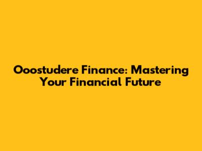 Ooostudere Finance: Mastering Your Financial Future