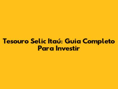 Tesouro Selic Itaú: Guia Completo Para Investir